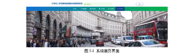 当游客打开系统的网址后,首先看到的就是首页界面。在这里,游客能够看到大学生二手闲置物品置换交易管理系统的导航条显示首页、免费物品、积分物品、公告资讯、后台管理、个人中心等。系统首页界面如图5-1所示: