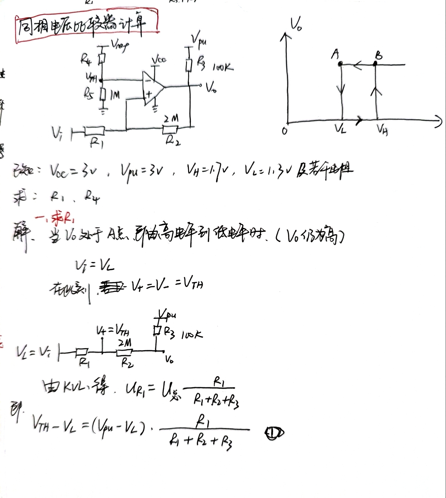 如图,分别是同相迟滞电压比较器电电路,电压传输特性曲线。