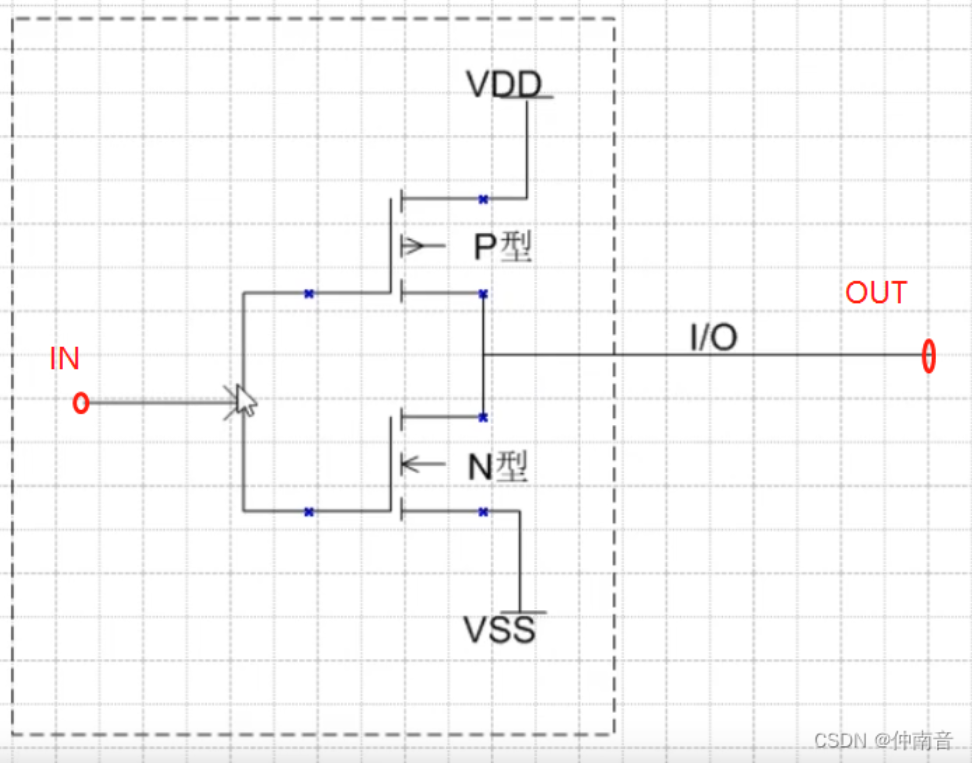当输入为高电平,NMOS导通,此时D级输出为高;反之,NMOS截止,此时D级接地输出低电平。】
