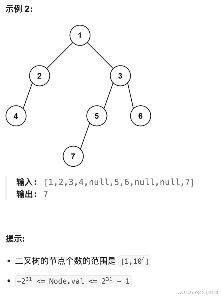 1. 确定输入和输出:输入节点和当前深度,不需要返回值