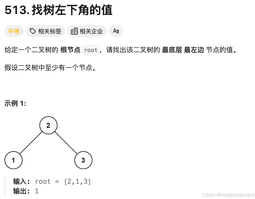 所以本题的题意应当是:在树的最后一行找到最左边的值。首先要是最后一行,然后是最左边的值。
