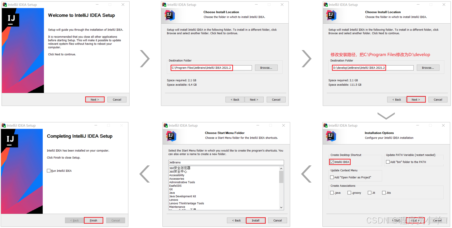 - 安装路径中不要包含中文和空格。所有的开发工具最好安装目录统一: