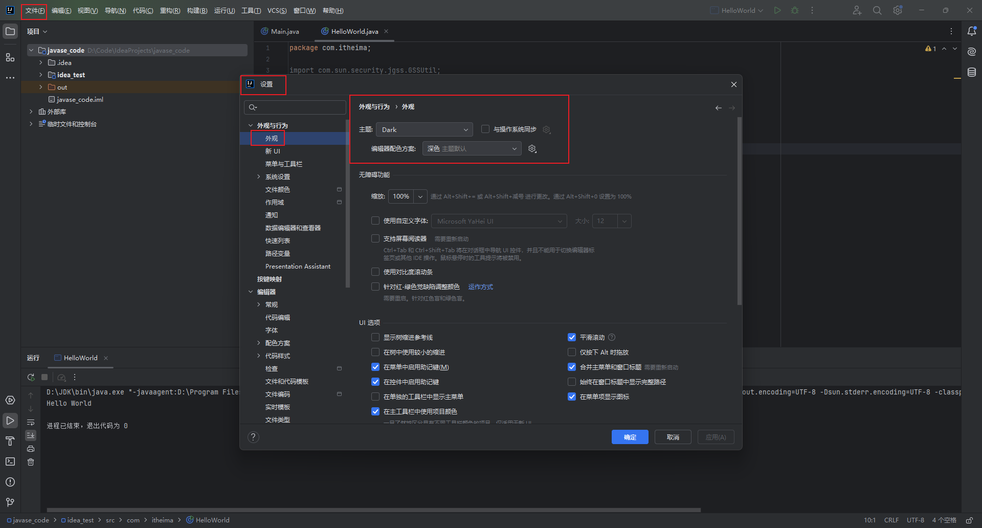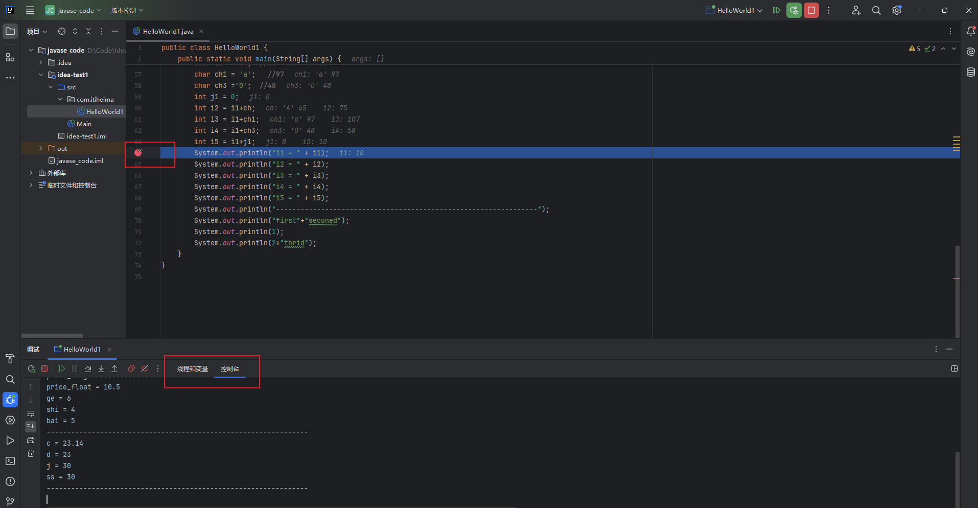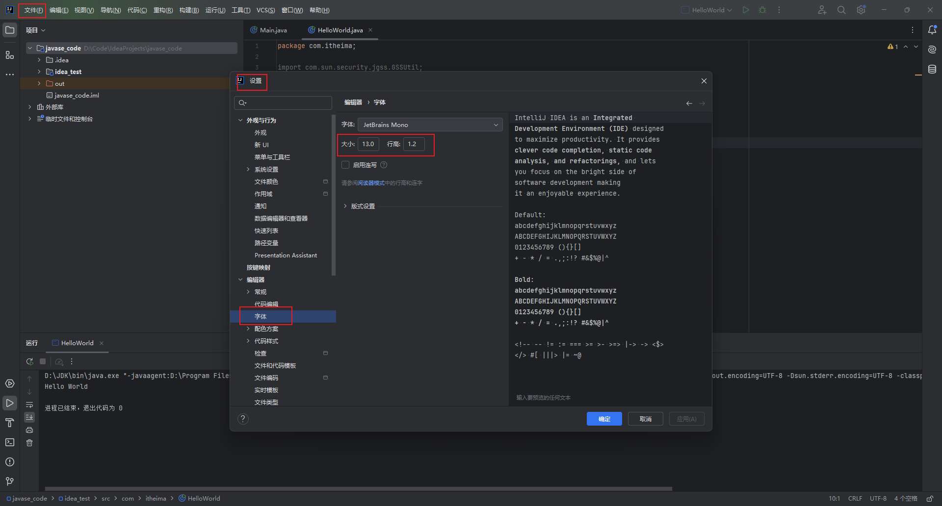- 在HelloWorld类中编写代码(main回车,sout回车)