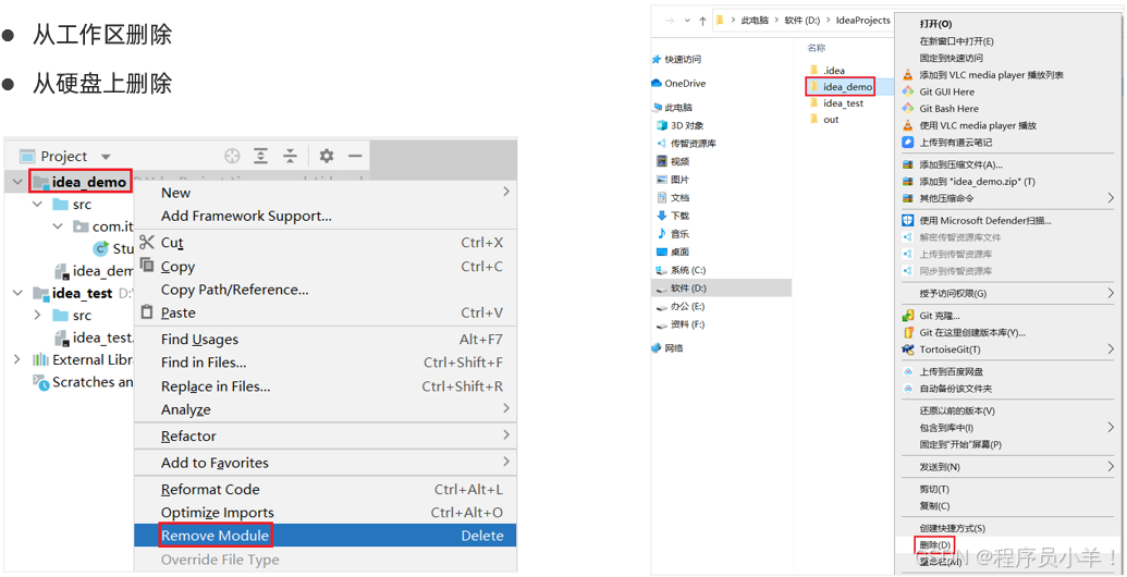 2、删除模块:删除模块又分为从工作区删除和从硬盘删除。