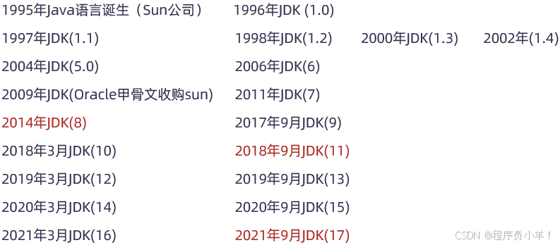 这么多版本,主要了解三个版本:JDK8,JDK11,JDK17。JDK8是企业用的最多的版本,JDK11和JDK17是后续长期支持更新额版本。