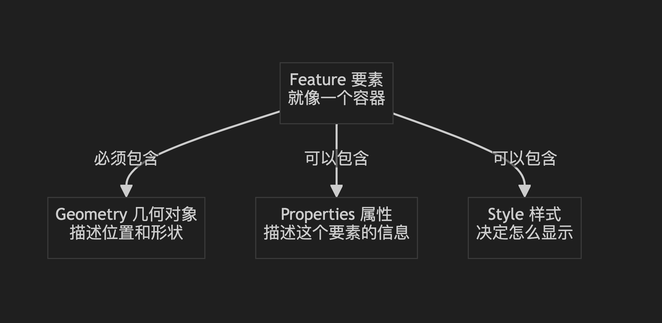 - Feature 是一个容器,必须包含 Geometry