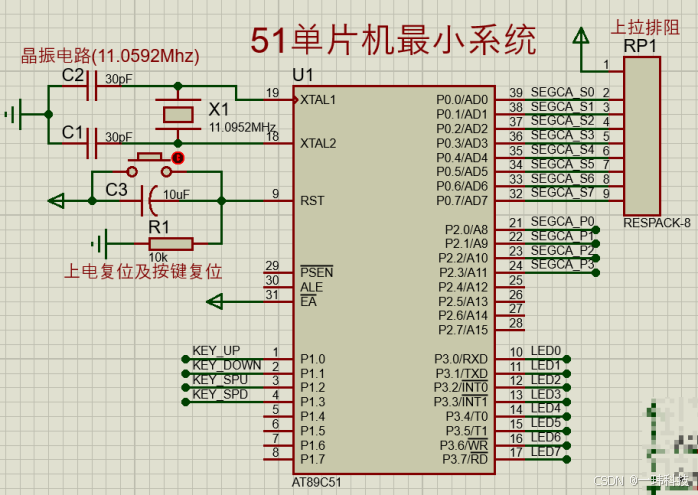 - 晶振电路:采用11.0592MHz的频率,为微控制器提供精确的时钟信号;