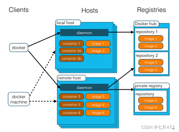 一个者物理或虚拟的机器用于执行 Docker 守护进程和容器。 |