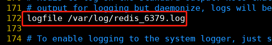 logfile /var/log/redis_6379.log #172行,指定日志文件目录