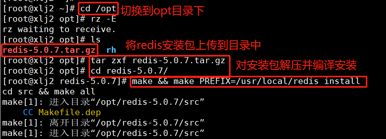 tar zxvf redis-5.0.7.tar.gz -C /opt/