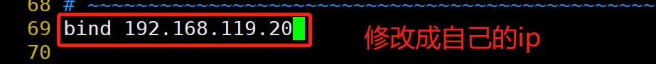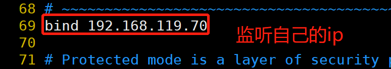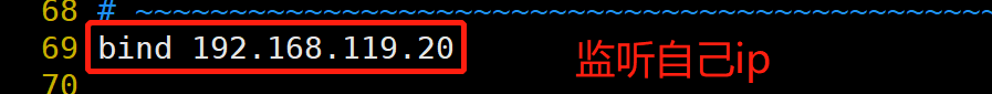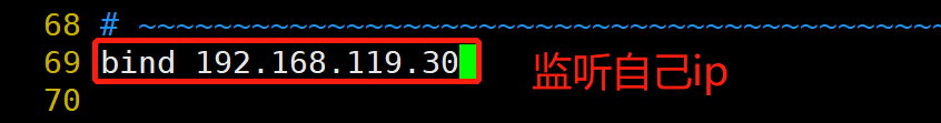 bind 192.168.119.70 #69行,修改bind项,监听自己的IP