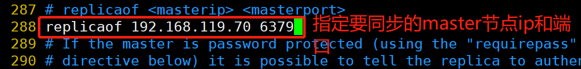 replicaof 192.168.119.70 6379 #288行,指定要同步的Master节点IP和端口
