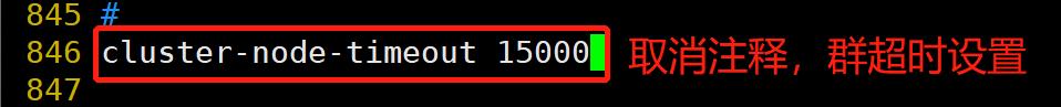 cluster-node-timeout 15000 #846行,取消注释群集超时时间设置