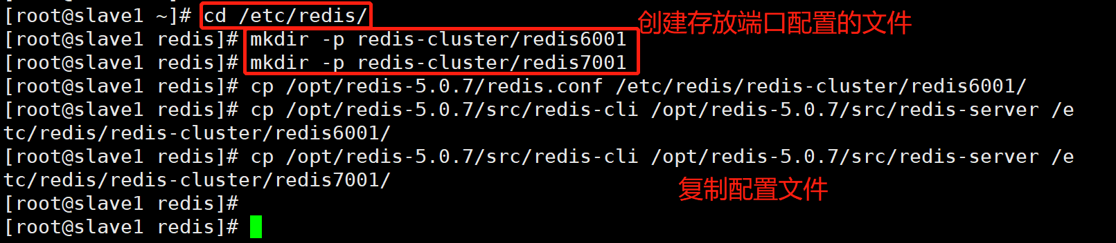 cp /opt/redis-5.0.7/src/redis-cli /opt/redis-5.0.7/src/redis-server /etc/redis/redis-cluster/redis7001/