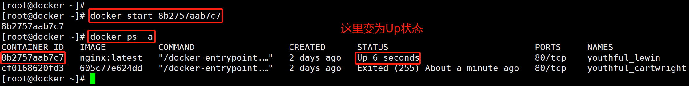 新创建的容器默认处于停止状态,不运行任何程序,需要在其中发起一个进程来启动容器。