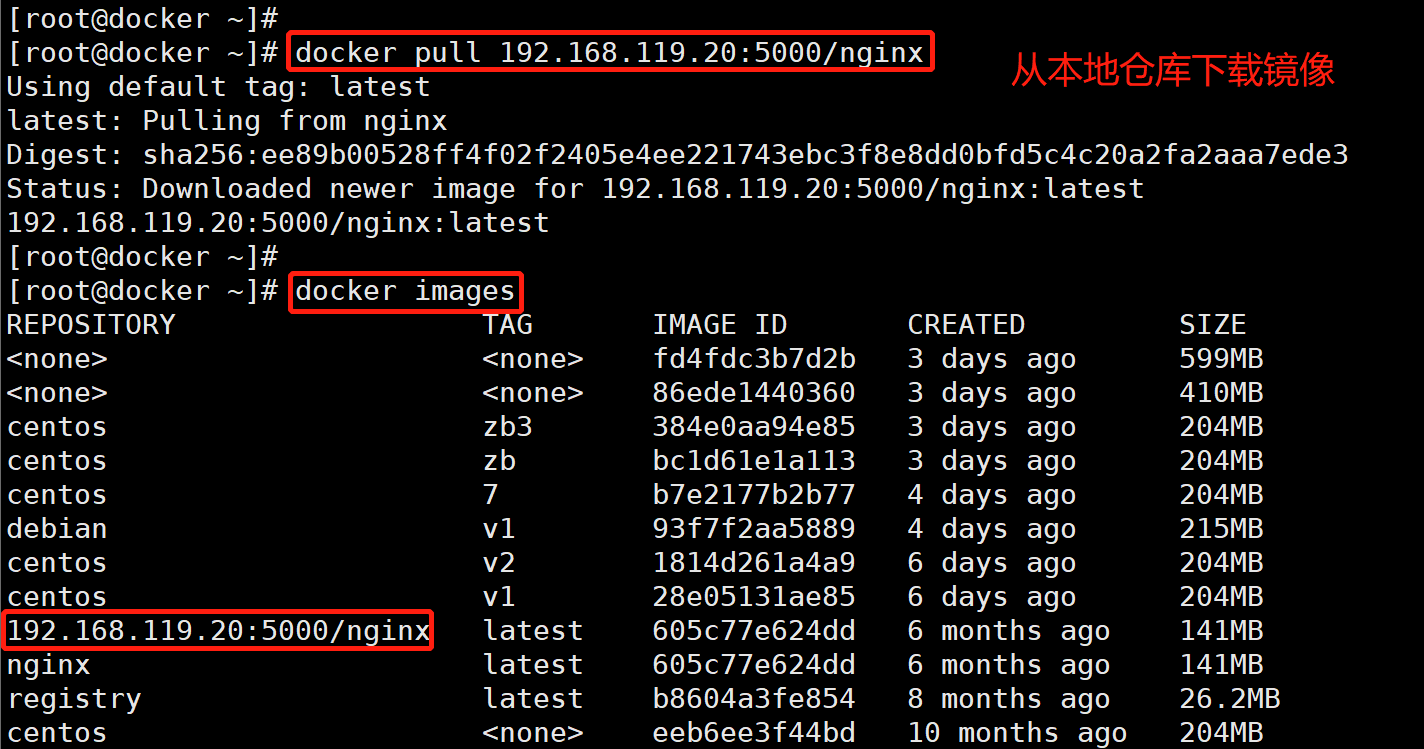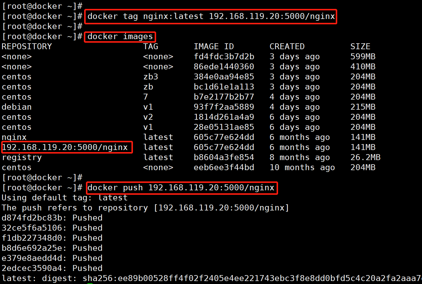 # docker tag nginx:latest 192.168.119.20:5000/nginx