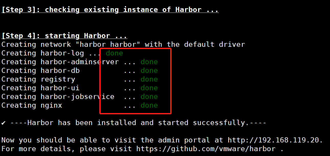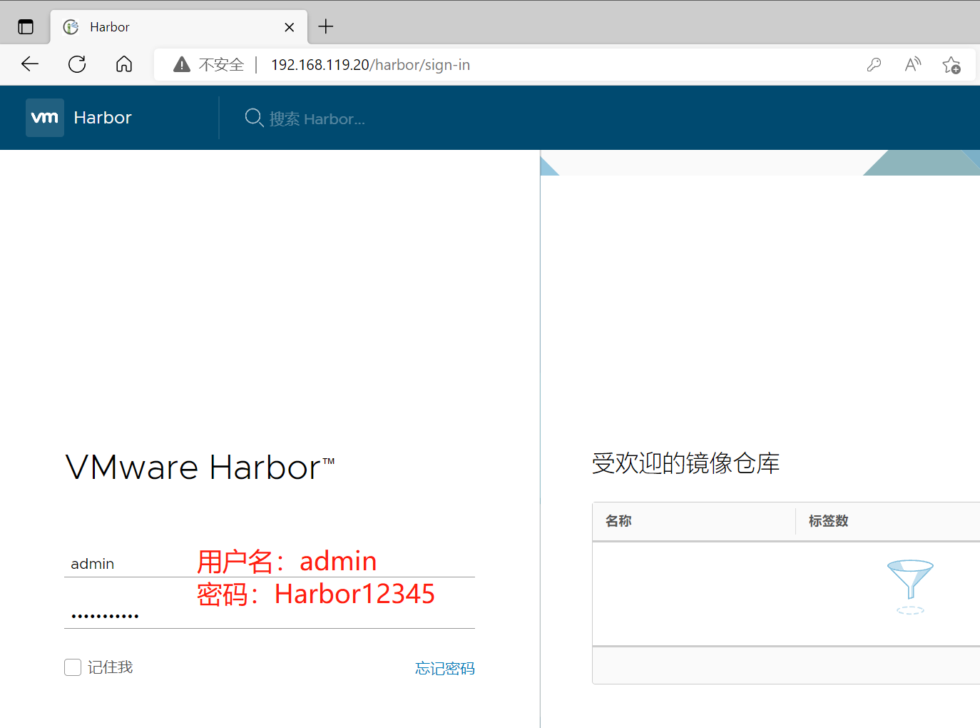 # docker login -u admin -p Harbor12345 http://192.168.119.20