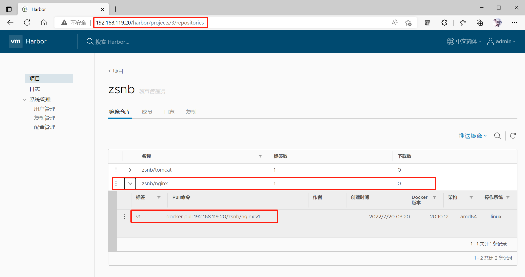 docker pull 192.168.119.20/myproject-li/nginx:v1
