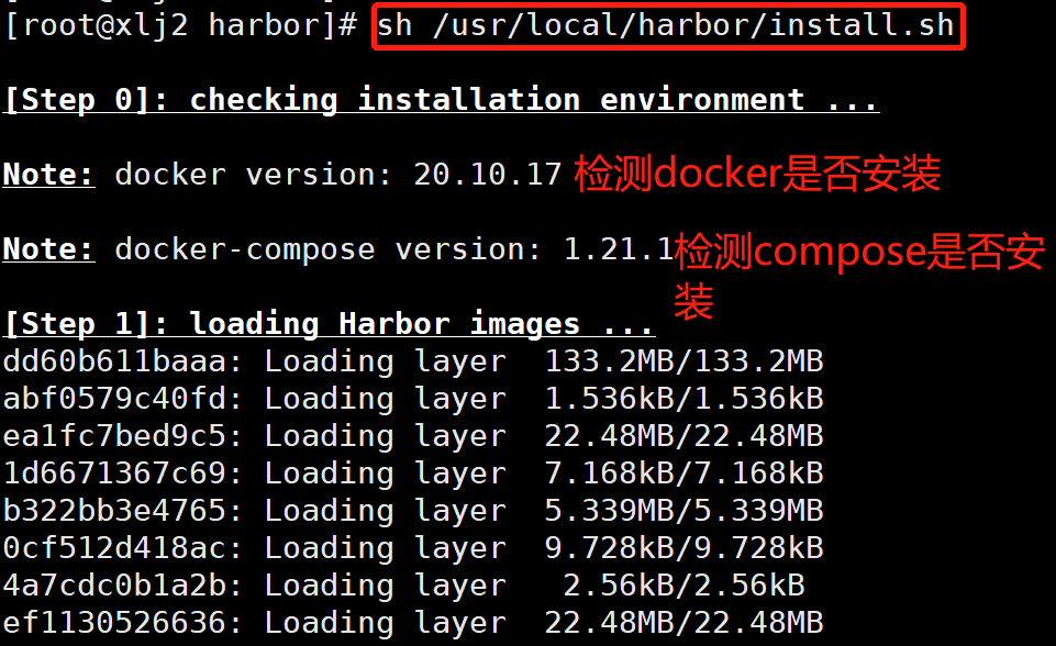 # tar zxvf harbor-offline-installer-v1.2.2.tgz -C /usr/local/