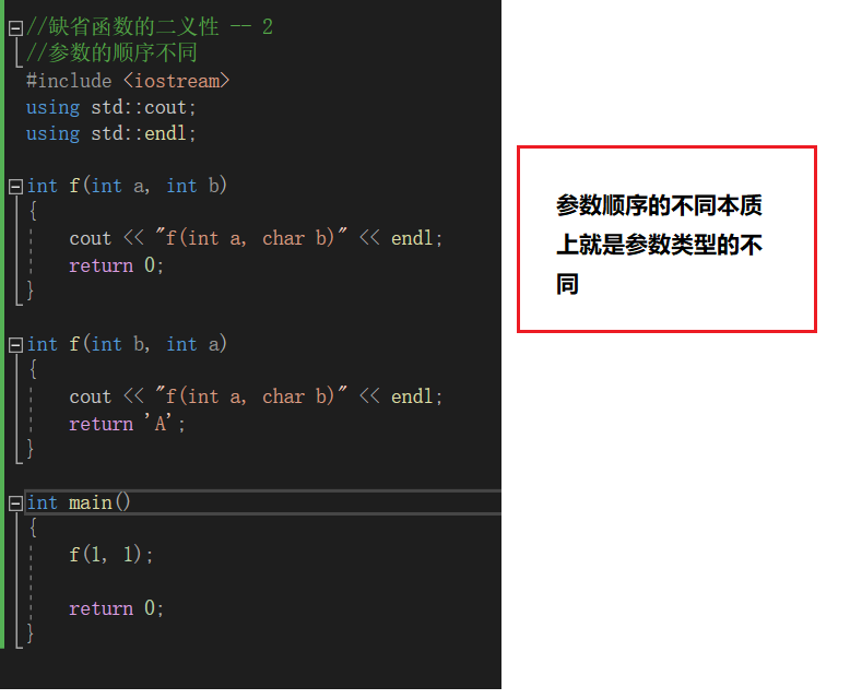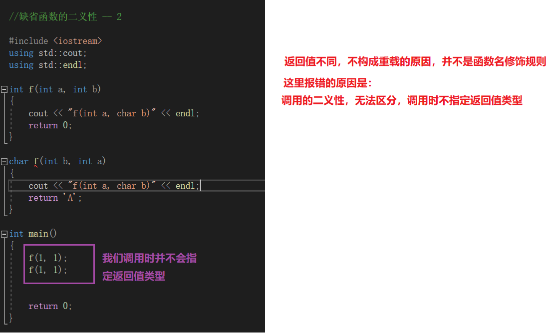//f(); 在前面存在的前提下,直接调用f()会报错 -- 二义性