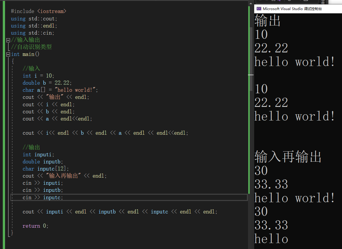 cout << "hello world!" << endl; //cout -- console cout(控制台输出)