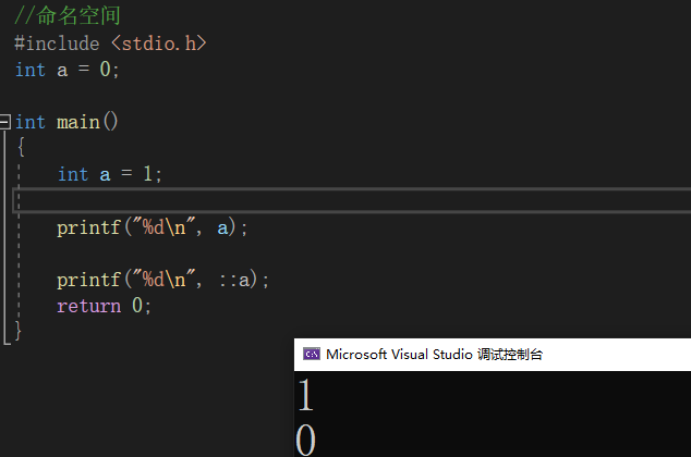 printf("%d\n", ::a); //这里用到的就是全局变量 -- :: 前为空白(什么都没有)
