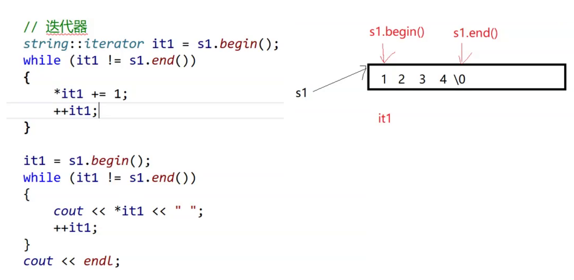 //迭代器(通用的访问形式,不仅仅是在string里面可以用) -- 一个像指针但是不一定就是指针