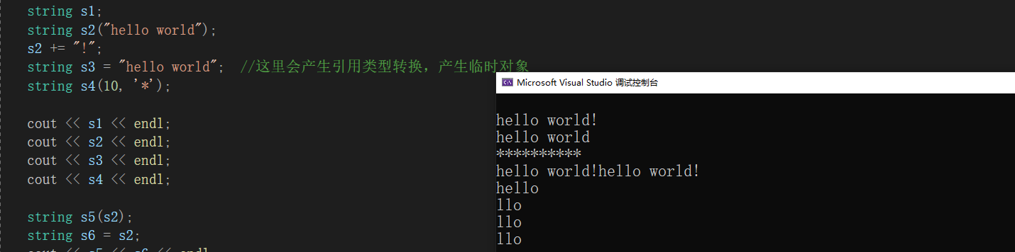 string s3 = "hello world"; //这里会产生引用类型转换,产生临时对象