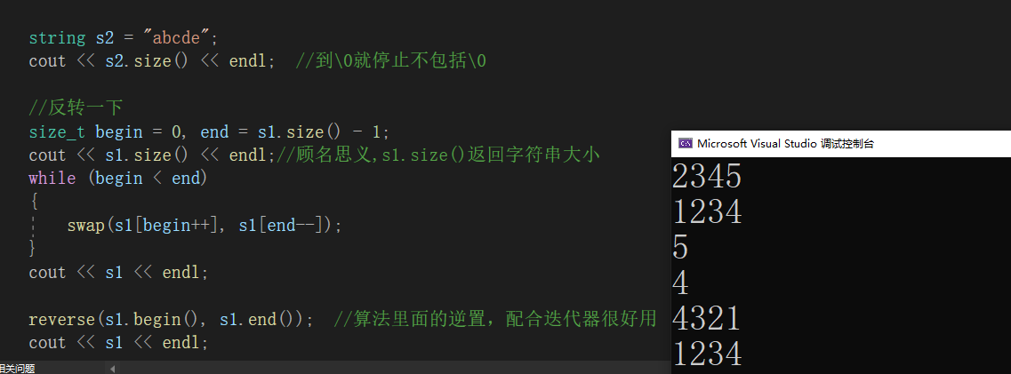 reverse(s1.begin(), s1.end()); //算法里面的逆置,配合迭代器很好用