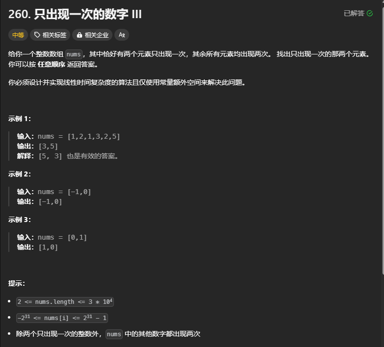 260. 只出现一次的数字 III