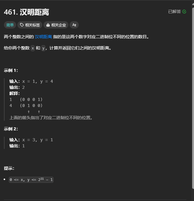 461. 汉明距离