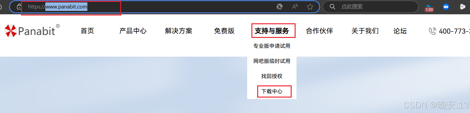 在Panabit官网(www.panabit.com)下载镜像文件。在官网的支持与服务中,选择下载中心。