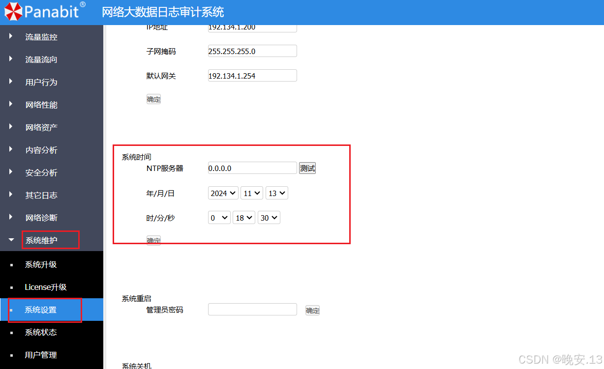 在系统维护->系统设置中,配置系统时间,该时间与主机时间误差在一分钟内即可。