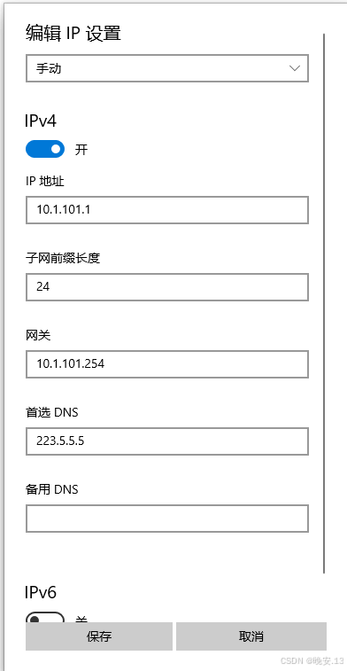 在安装完成Win10虚拟机后,配置Win10的IP地址。设置为静态IP,IP地址为内网网段10.1.101.0/24下的地址即可,这里设置为10.1.101.1,网关设置为10.1.1.101.254。
