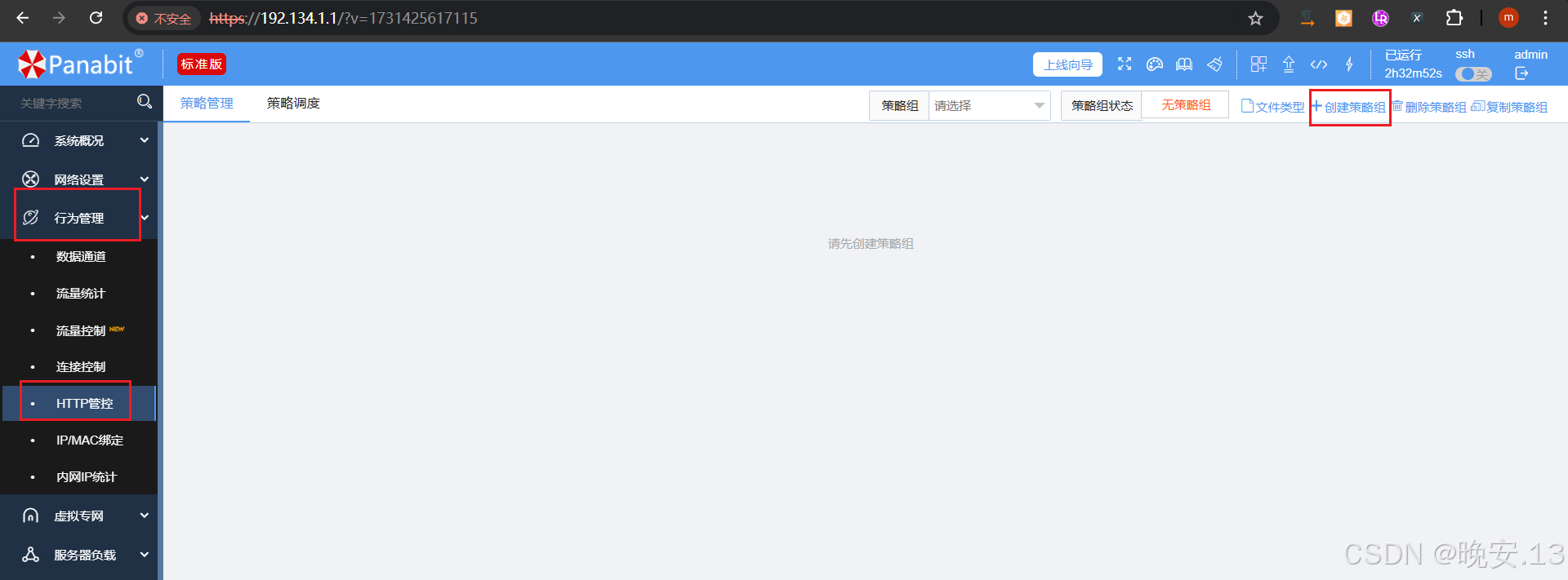 在Panabit的,行为管理->HTTP管控中添加策略组。