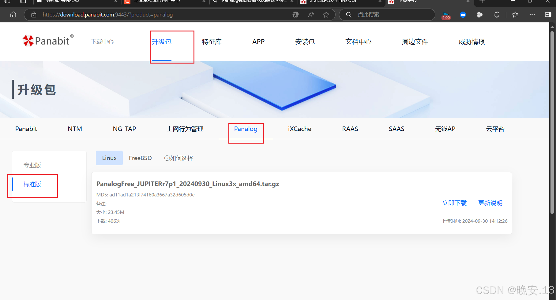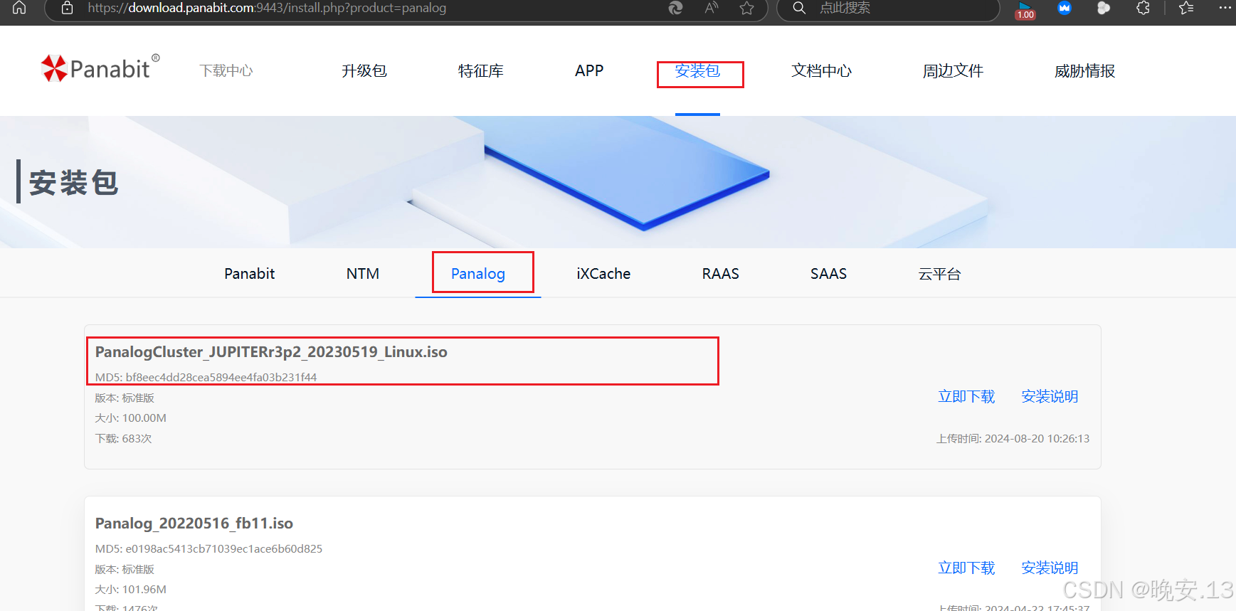 在官网的安装包中,下载标准版Panalog镜像文件。