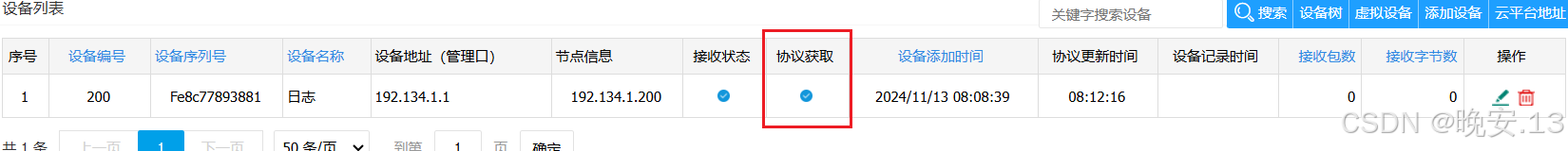 回到Panalog中,如果设备管理中的协议获取成功连接,则说明Panabit与Panalog对接成功。