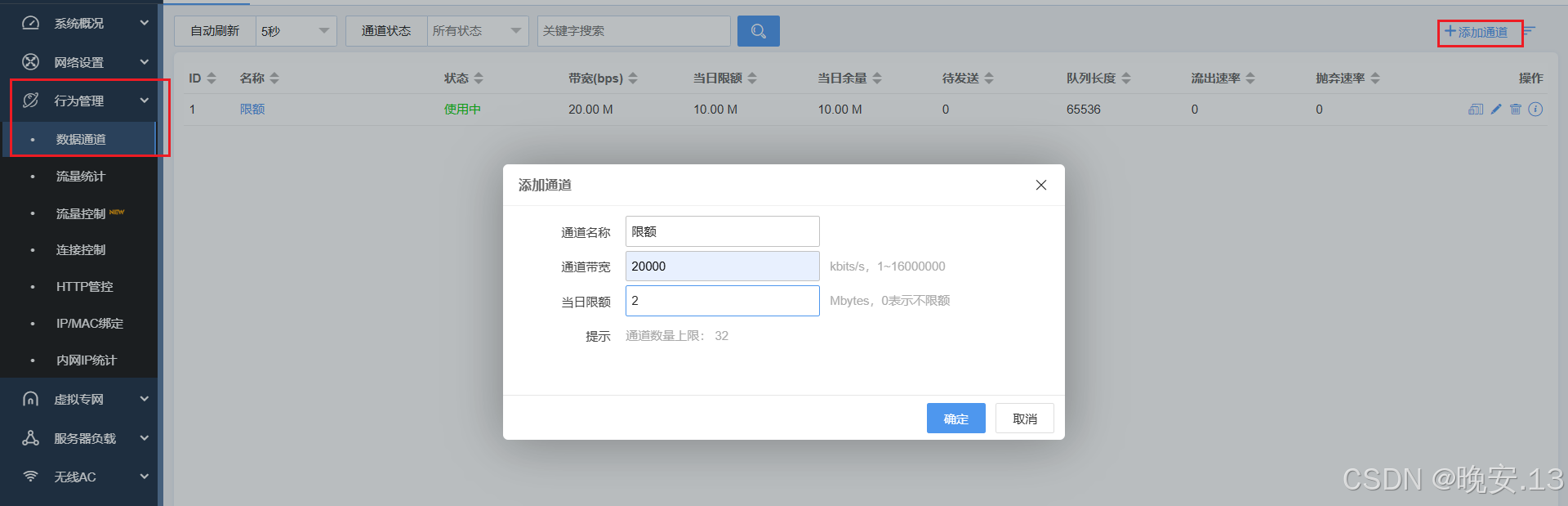 在流量控制中,先添加策略组后添加策略,以调用限额通道。