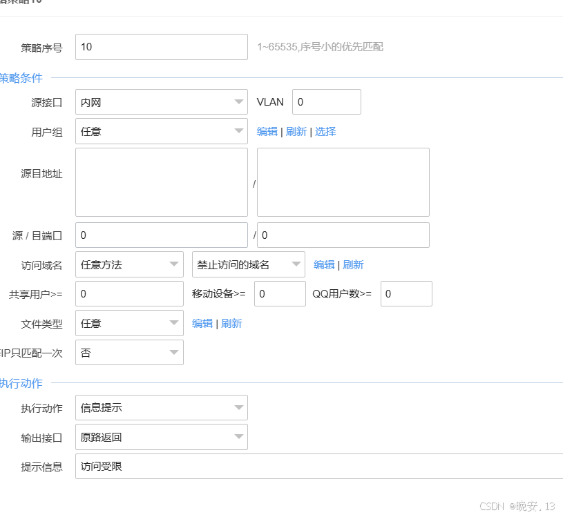 之后编写HTTP策略,禁止内网访问受限的网页,并弹出提示。