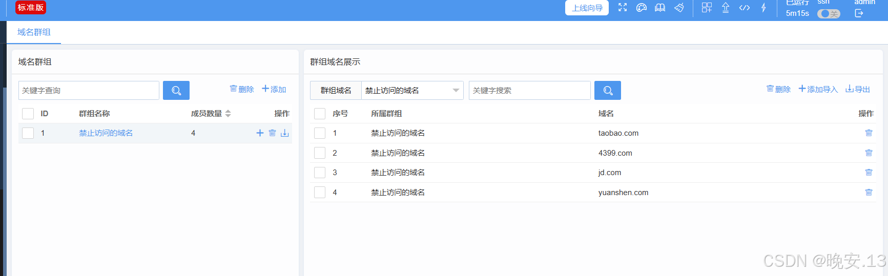 在群组中添加域名,如禁止访问京东,淘宝等。