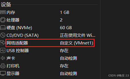 在拓扑结构中,vm1的网卡连接的是内网,所以Win10虚拟机的网络适配器设置为下。