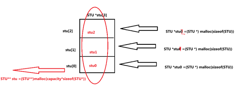 STU ** stu = (STU**)malloc(capacity*sizeof(STU*));
