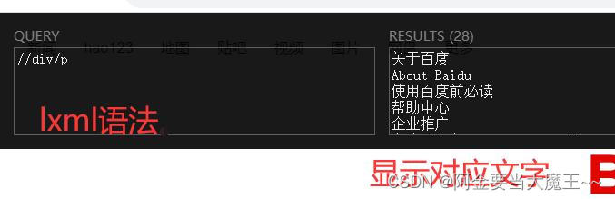lxml网页使用 写lxml语法 右边会出现对应的文字数据