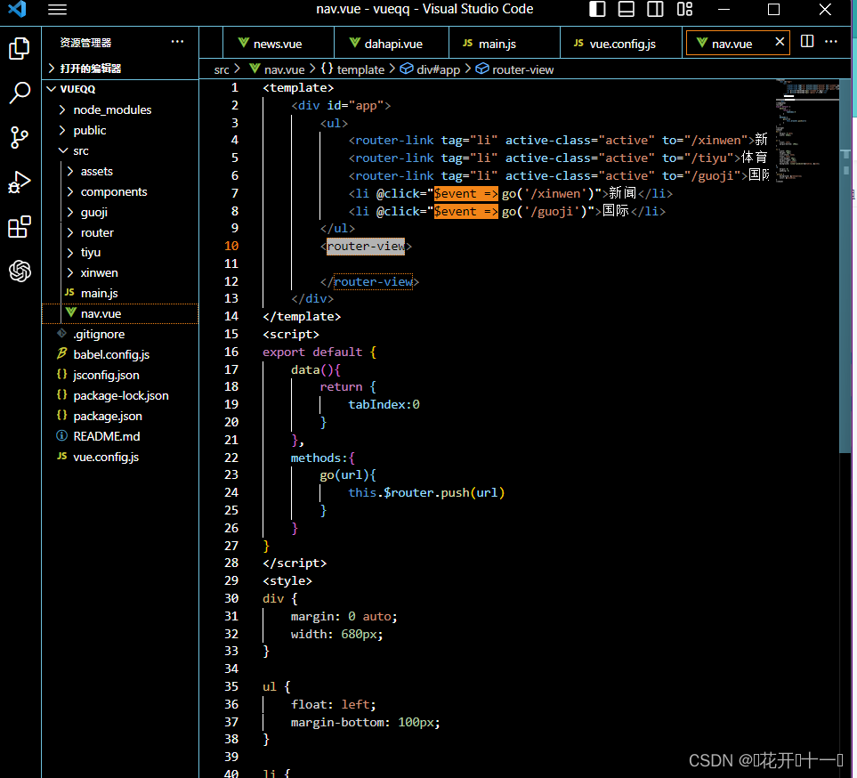 1.语法:<router-link tag="li" active-class="active" to="/xinwen"></router-link>