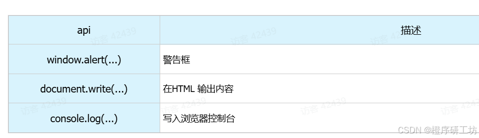 在JS中有3种输出语句,分别是: