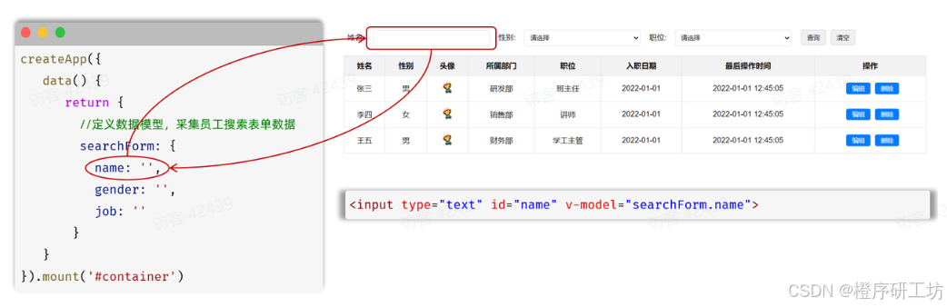 <input type="text" name="name" placeholder="姓名" v-model="searchForm.name" />