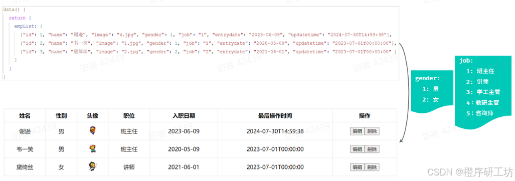 需求:基于axios动态加载员工列表数据