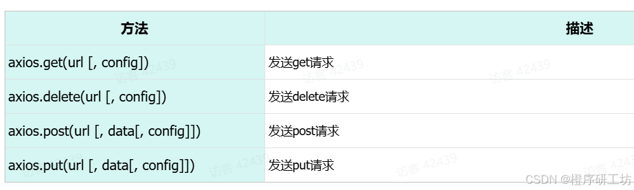 Axios还针对不同的请求,提供了别名方式的api,具体格式如下: