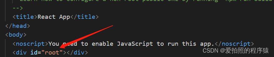 // 第一个参数表示你要渲染谁,第二个表示挂载到哪里(如下图所示可在html页面中找到id为root的标签)
